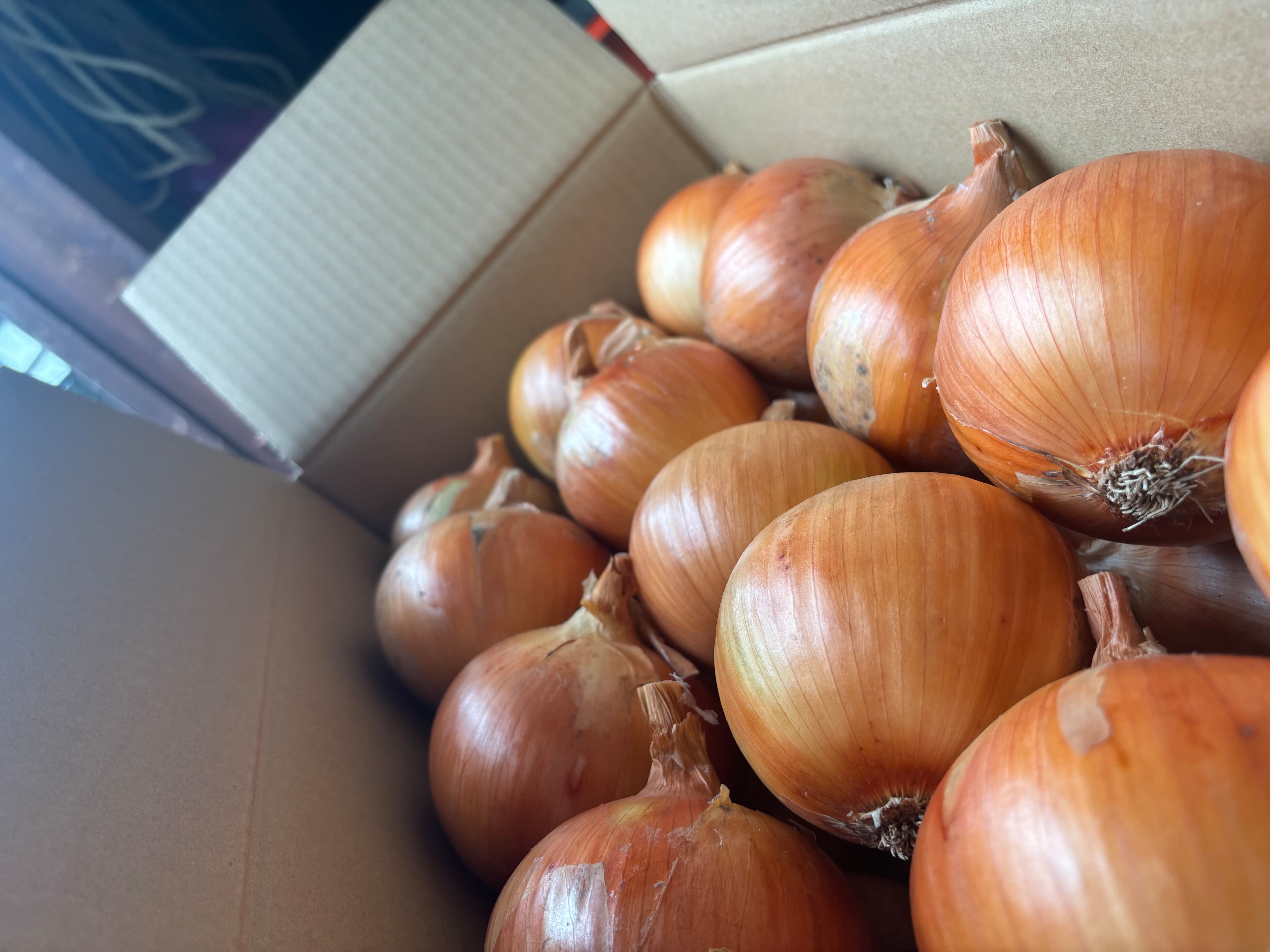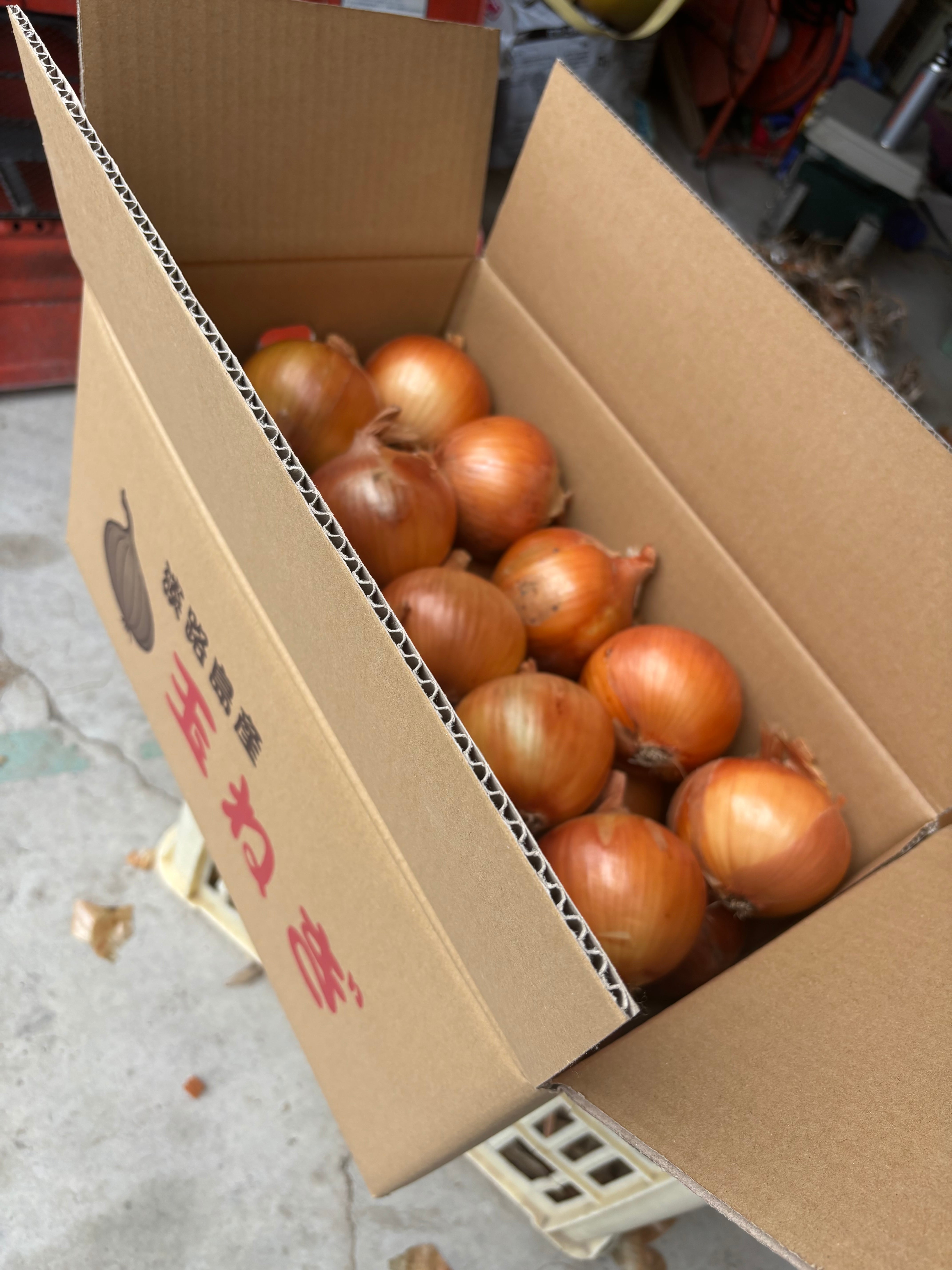 約7ヶ月の栽培期間と収穫後玉ねぎ小屋で吊り下げ、十分に成熟させた玉ねぎです。